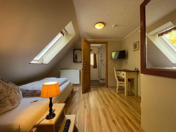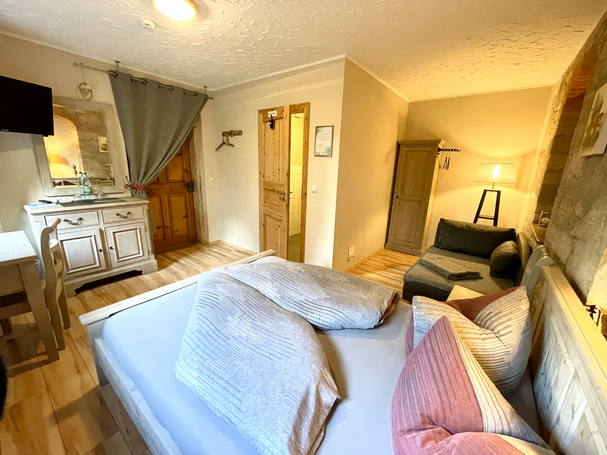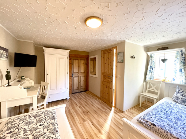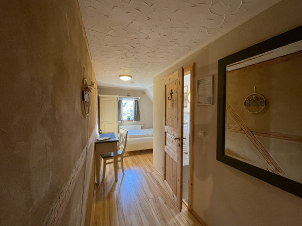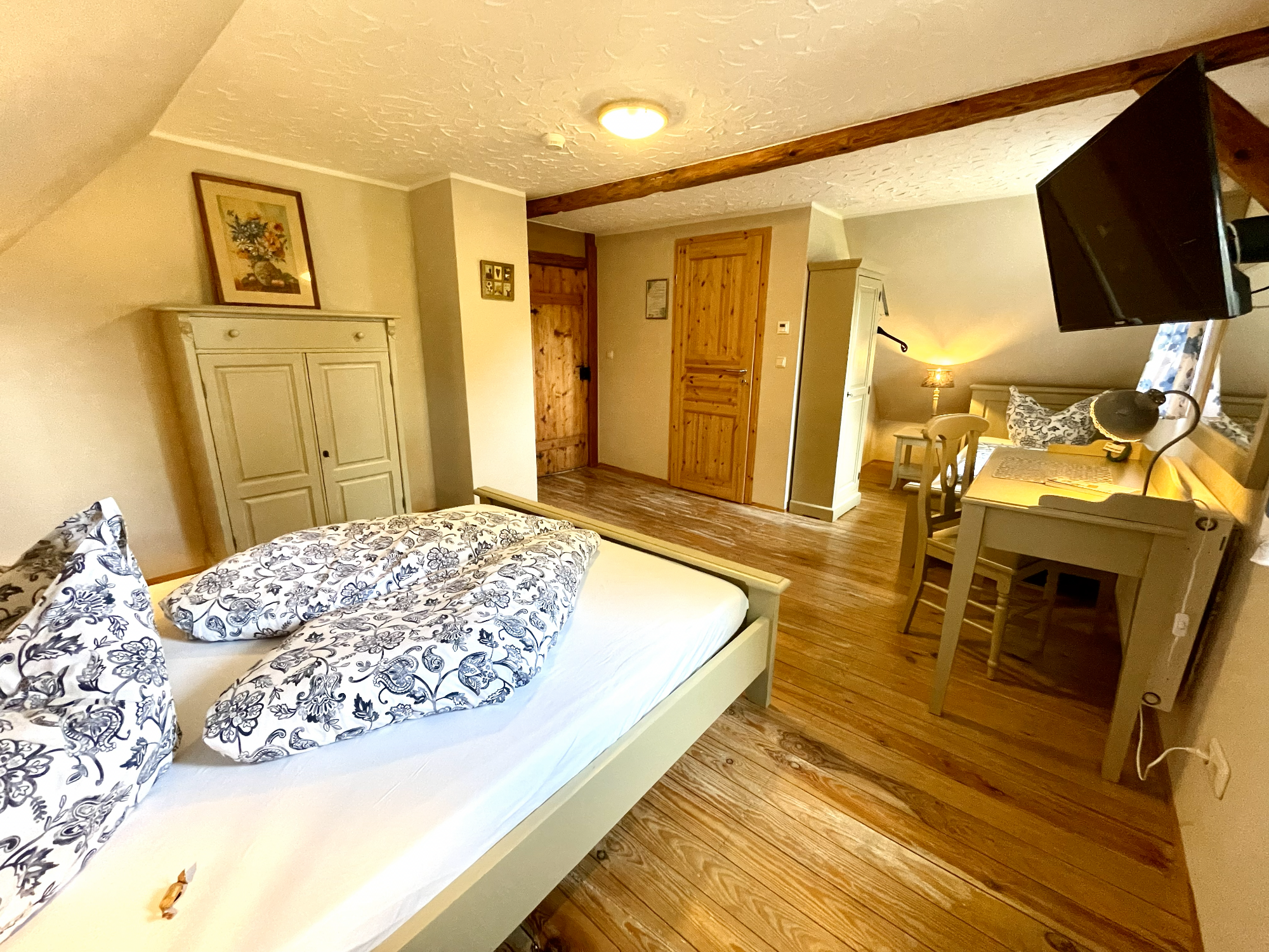 Unsere Ein- bis Dreibettzimmer sind so benannt, wie sie bei der Restaurierung vorgefunden wurden. Alle Zimmer sind ausgestattet mit einem eigenen Badezimmer (meist mit Fenster), TV, Bettwäsche, Handtüchern, Föhn, Seife, Duschbad/Shampoo und landhaustypischen Echtholzmöbeln. Wohlfühlen garantiert!